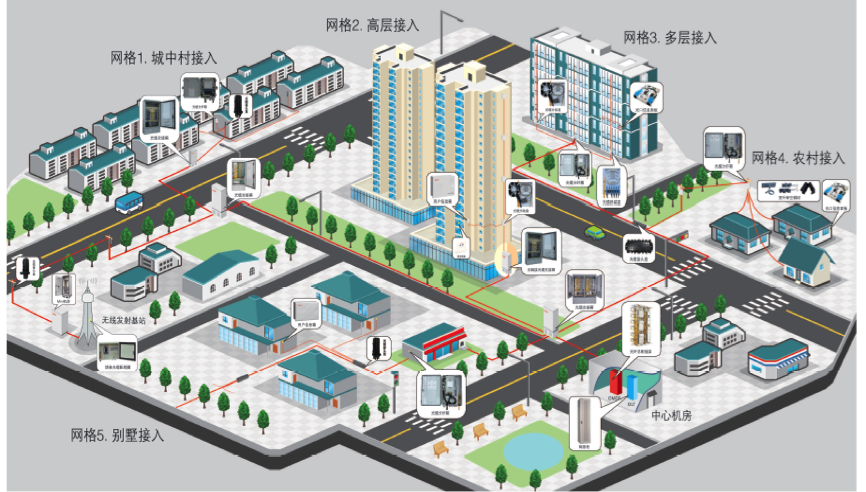 FTTx是指把光纤用于接入层网络,使光纤靠近用户甚至直接连接到用户的接入组网方式。光纤接入网采用光纤作为传输媒质,具有传输容量大、传输质量高、高可靠性、传输距离长、抗电磁干扰等优点,是未来固定宽带接入的开展方向。近年来,人们的需求已经由单纯的语音通讯向多媒体通讯迈进,随着IPTV,HDTV,体感游戏,数字家庭等业务的兴起,传统接入方式已经无法满足日益攀升的带宽要求。FTTx接入速率可以高达20Mbit/s~100Mbit/s,未来随着设备技术的进一步提升,还可进一步提高带宽,凭借其无法比拟的带宽优势而成为必然选择。